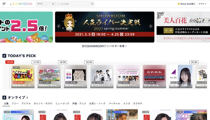 「夢を叶えたいパフォーマーとそれを応援したい視聴者をつなぐこと」をコンセプトとしているSHOWROOMは、動画プラットフォームにライブ機能も付帯しています。配信者である「パフォーマー」は「仮想ライブ空間」を設定でき、視聴者はそこにアバターとして参加します。