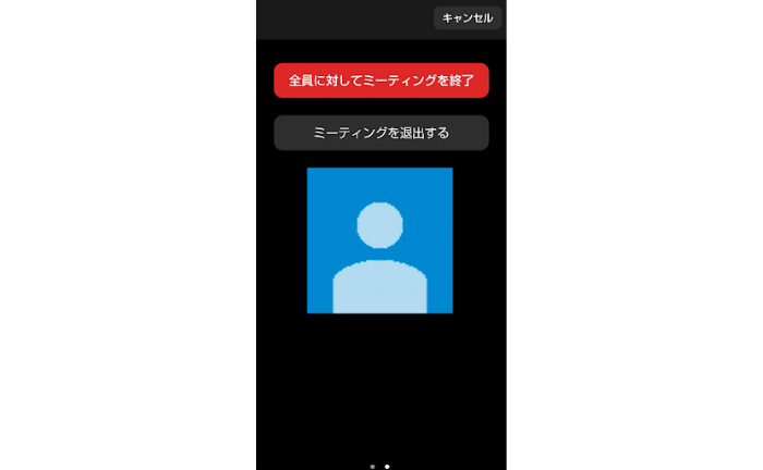 1.ミーティング画面の右上にある「終了」ボタンをタップ